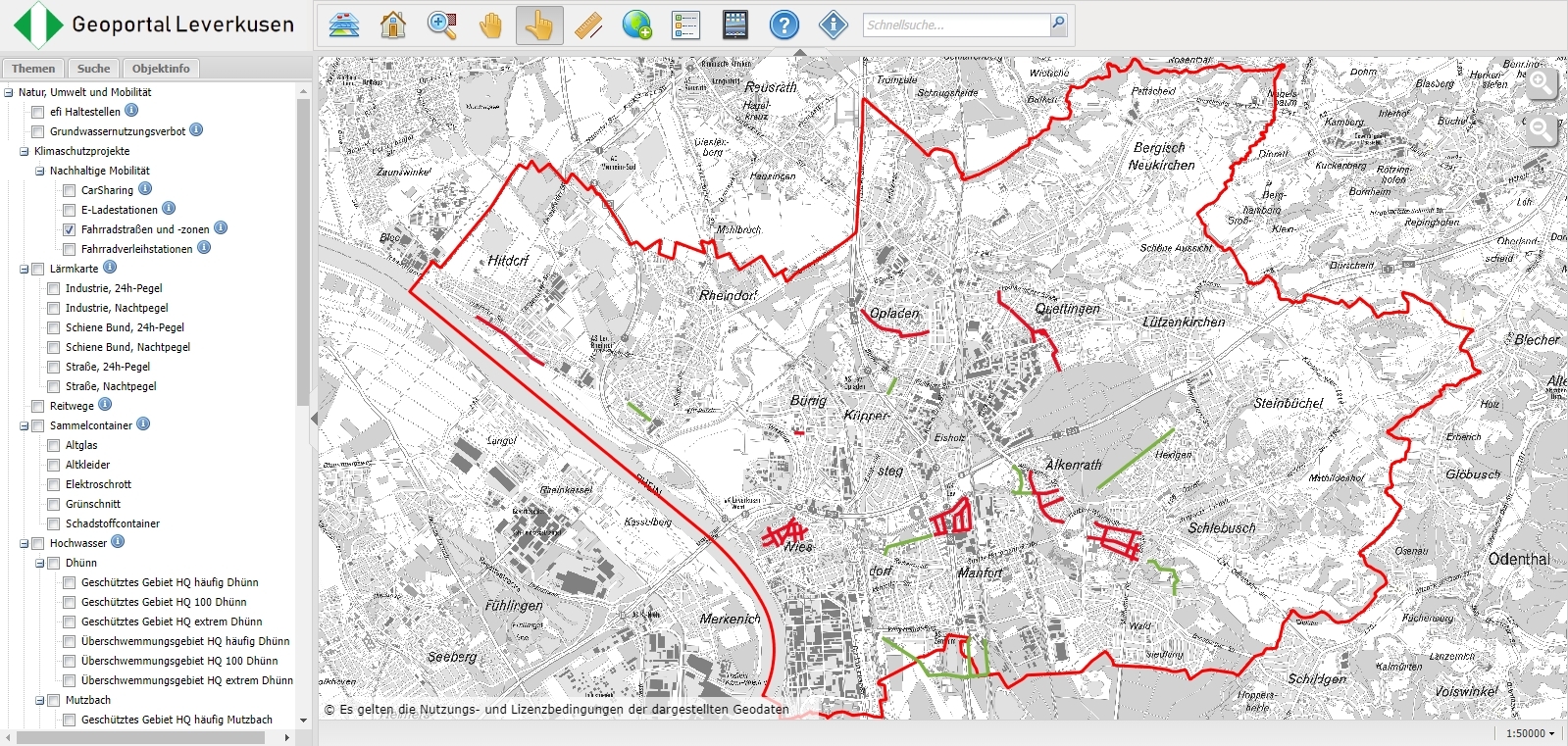 Fahrradstraßen Geoportal LEV linke Seite Häkchen setzen