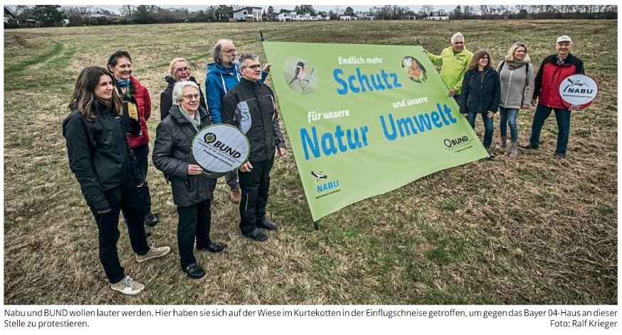 Kurtekotten Nicht ohne Grund habe man sich für den Fototermin die Wiese in der Einflugschneise ausgesucht, auf der Bayer 04 ein Wohnheim und Parkplätze bauen will. Das, obwohl die Wiese außerhalb der Siedlung liegt. „Der Außenbereich ist ein No-Go!“, sagt Kochanek. Die Mehrheit im Leverkusener Stadtrat hat das Bauprojekt jedoch schon akzeptiert.